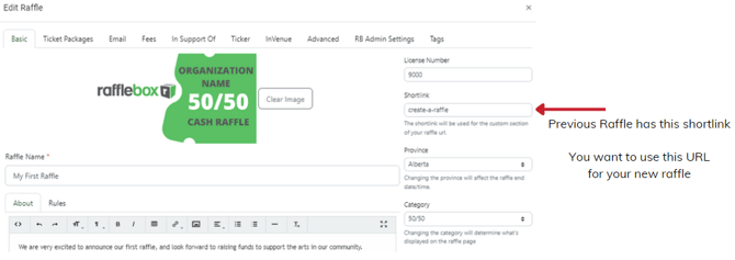 - An essential part of a recurring raffle is maintaining the same URL (or shortlink) from raffle to raffle. Each raffle on our platform has a unique URL. To maintain the same shortlink you will need to edit your previous raffle's shortlink to something else to free up the URL to be used again on your new raffle.