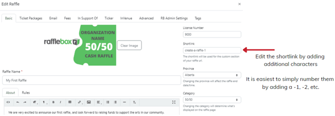 You will want to edit this shortlink by adding a -1 (or -2, -3 as you continue). In this example we edited the shortlink to be "create-a-raffle-1" indicating this was the first raffle run using this shortlink: